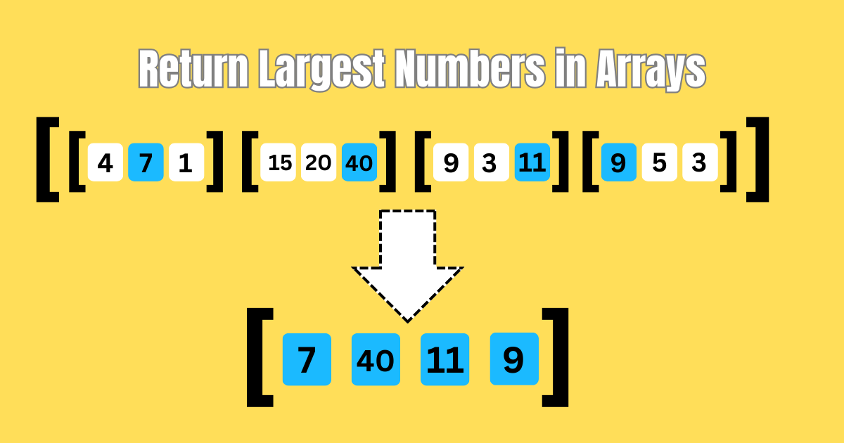 Return Largest Numbers in Array is a coding challenge that can be solved in any programming language, but for this tutorial, we will use JavaScript to solve it. In this challenge, we will be given a large array with multiple sub-arrays[[1,3,4], [3,11,2], [4,3,12]], and each sub-array contains numerous numeric values. We have to find the largest value from each sub-array and return these largest values in a single array. I know it sounds confusing, but don't worry, you'll understand it as we dive into the solution. Let's break this problem into smaller pieces for better understanding.